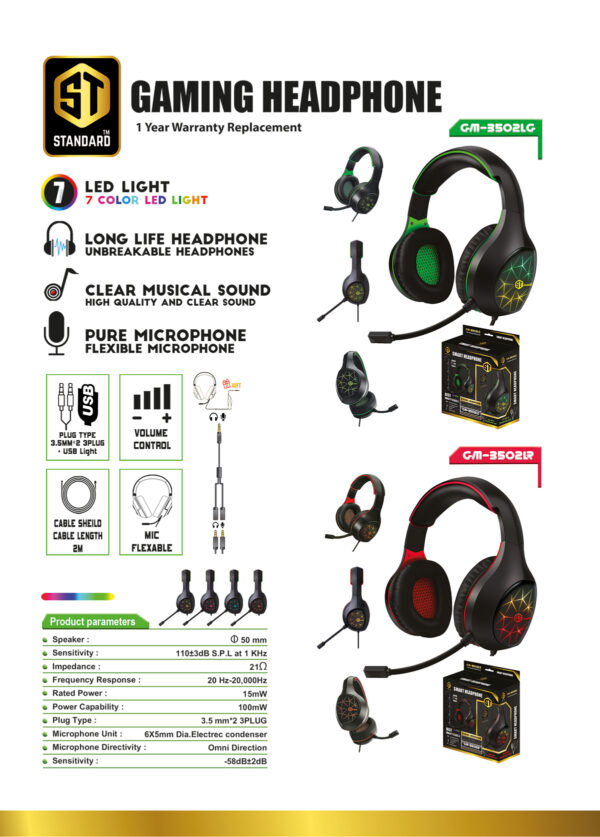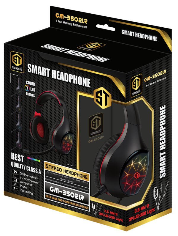 GM-3502LR Standard Gaming Headphones (3.5mm) Surround Sound – Flexible Unbreakable