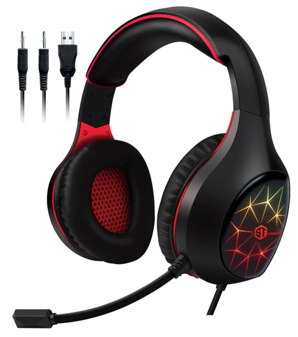 GM-3502LR Standard Gaming Headphones (3.5mm) Surround Sound – Flexible Unbreakable Volume Control Microphone Surround Sound 2-Jack to 1-Jack (gift)- Adapter for ps4 – mobile -Use RGB lights